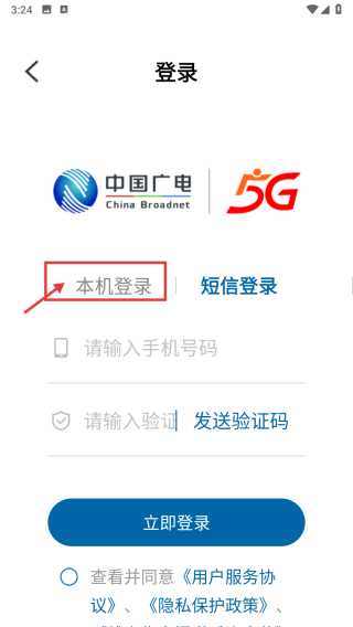3、在登录界面,选择本机登录选项,准备进行本机号码授权登录。