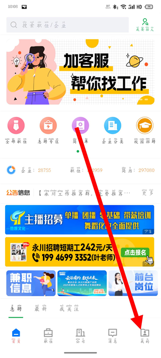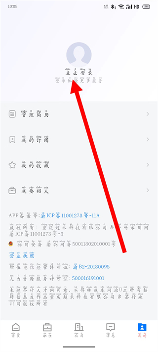 1、打开茶竹人才网,点击底部导航栏我的,进入个人页面。