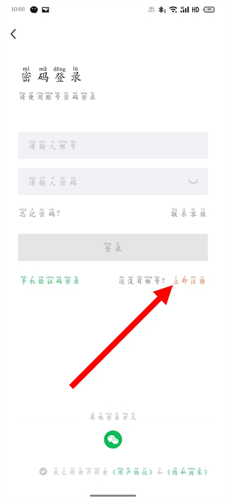 2、在个人页面,点击点击登录,跳转至登录页面后,选择立即注册。
