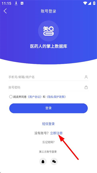 3、在账号登录页面,点击立即注册,进入快速注册页面。