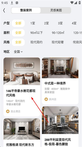 2、在整装案例页面,点击心仪案例,可进入该案例详情页面。