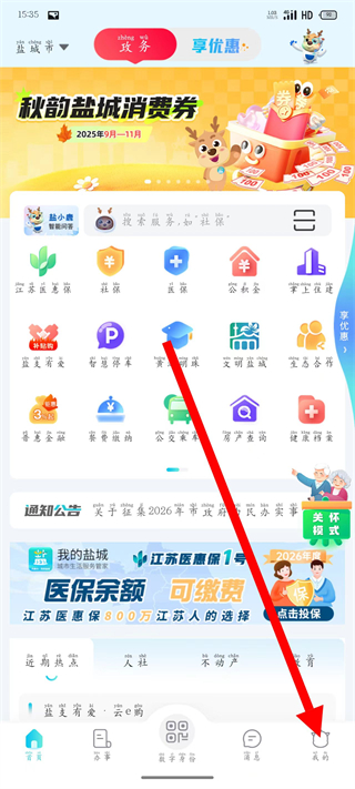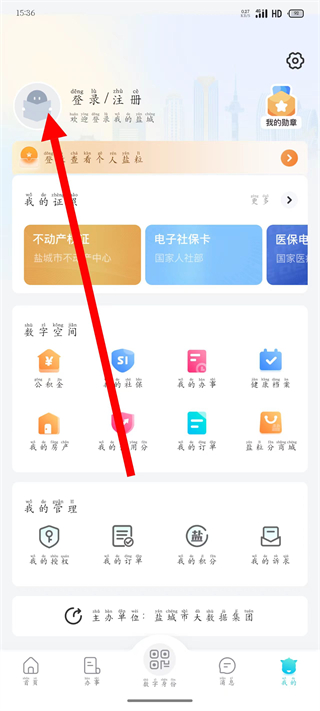 1、打开我的盐城,点击底部导航栏我的,进入个人页面。
