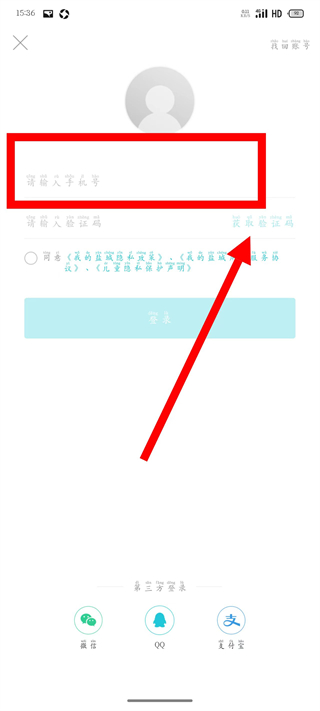 3、在登录页面,输入手机号码,点击获取验证码。