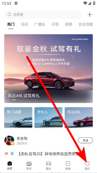1、打开奇瑞汽车客户端,点击底部我的,进入个人页面。