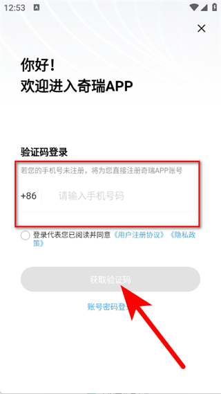 4、输入验证码,勾选用户协议后,完成账号登录。
