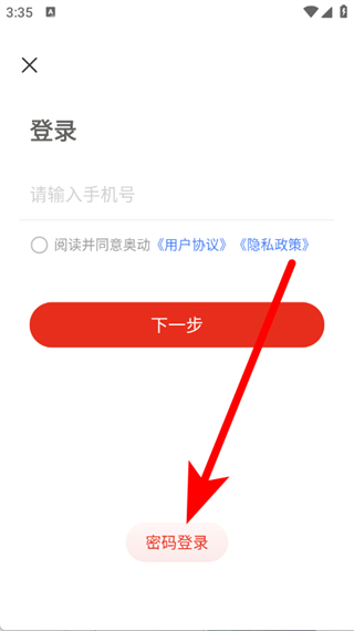 3、在登录页面,点击密码登录,进入密码登录页面。