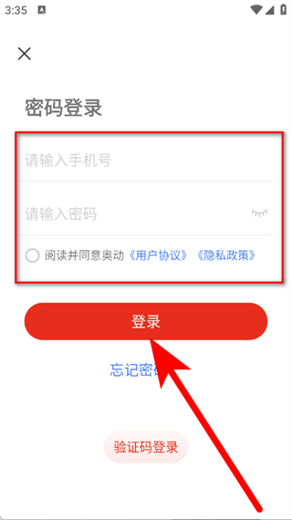 4、输入手机号码和密码,勾选阅读并同意后,点击登录,完成账号登录。