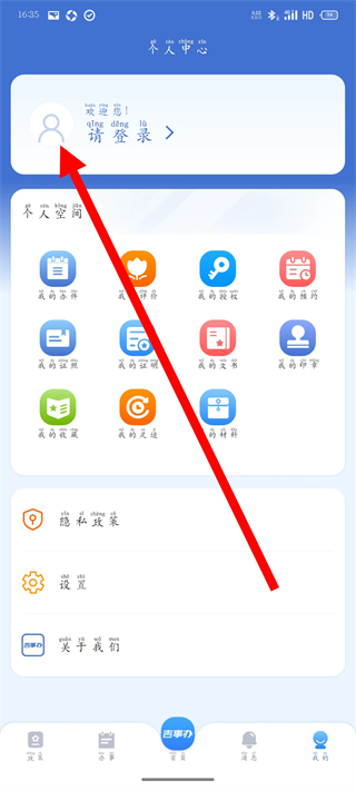 1、打开吉事办,进入个人中心页面,点击请登录。
