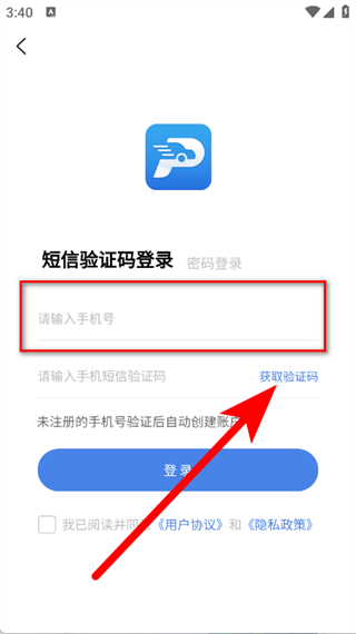 4、输入收到的短信验证码,勾选同意后,点击登录按钮,完成账号登录操作。