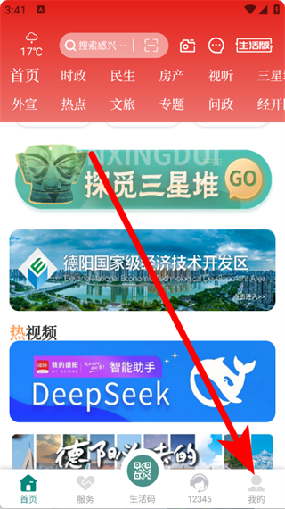 1、打开我的德阳,点击底部我的,进入个人页面。