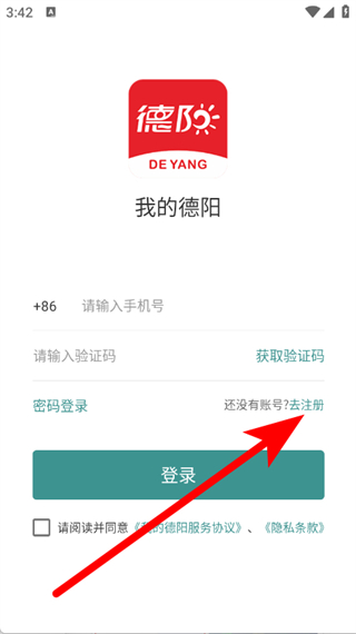 3、在登录页面,点击去注册,进入手机号注册页面。