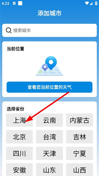 2、我们可以在添加城市页面,点击目标城市,查看该城市天气。