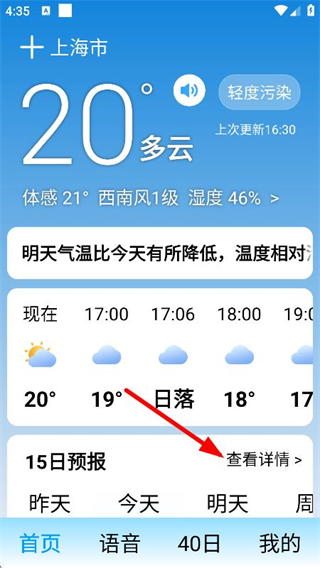 3、在城市天气页面,点击查看详情,进入天气详情页面。