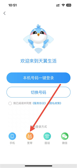 1、打开天翼生活APP,在我的页面点击点击登录。