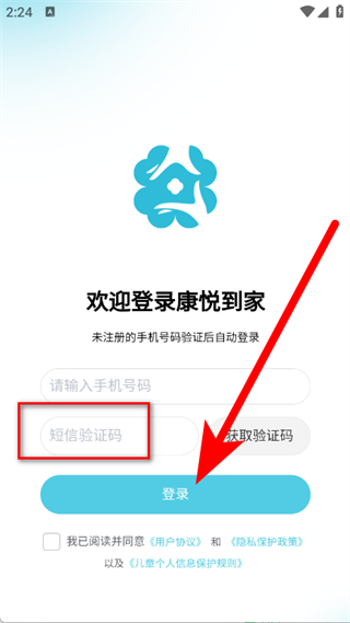4、输入短信验证码,勾选同意后,点击登录按钮,完成登录。