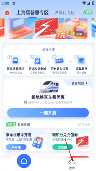 1、打开沪碳行,在首页点击我的,进入个人中心页面。