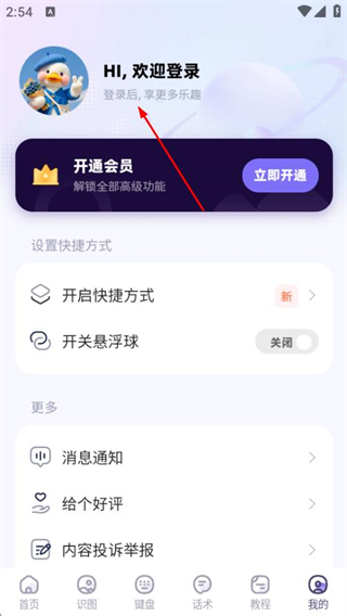 2、在个人中心页面,点击HI欢迎登录区域,触发登录方式选择弹窗。