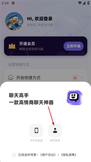 3、在登录方式选择弹窗中,点击账号登录,进入账号密码登录页面。
