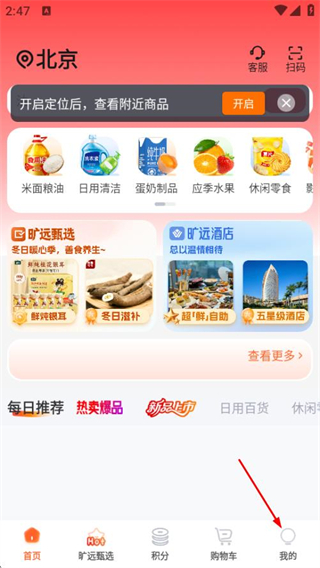 1、打开旷远e家,在首页点击我的,进入个人中心页面。