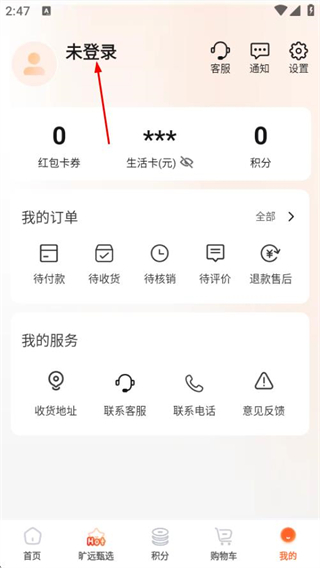 2、在个人中心页面,点击未登录,进入账户登录页面。