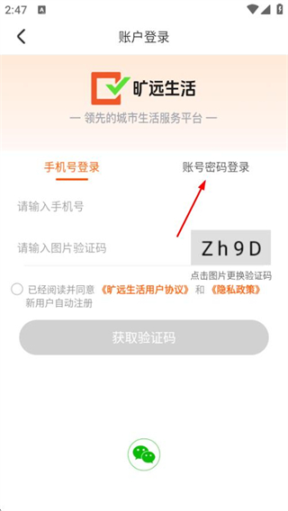 3、在账户登录页面,点击账号密码登录,切换到账号密码登录页面。