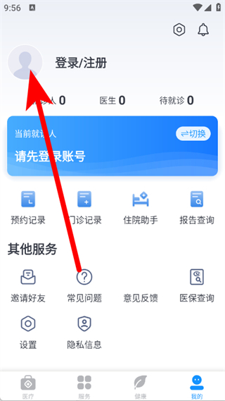 2、在个人页面,点击登录注册头像区域,进入登录页面。