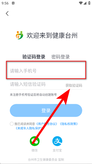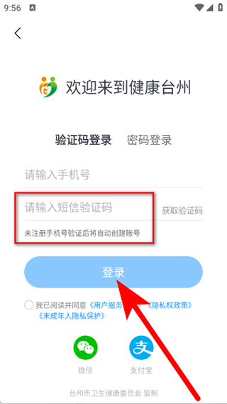 4、输入短信验证码,勾选后,点击登录,完成账号登录。