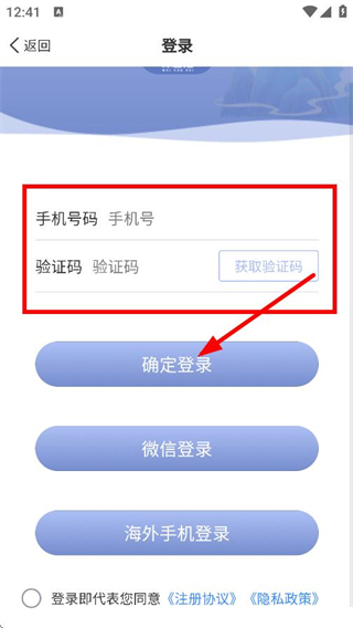 3、输入手机号,获取验证码并输入后,点击确定登录,完成账号登录操作。