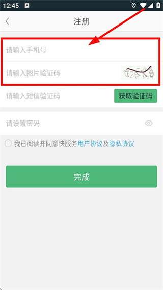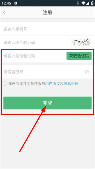 4、获取验证码并输入后,设置密码,点击完成,完成账号注册操作。