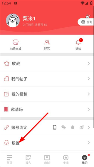 3、随后在个人页面,点击设置图标,进入设置页面。