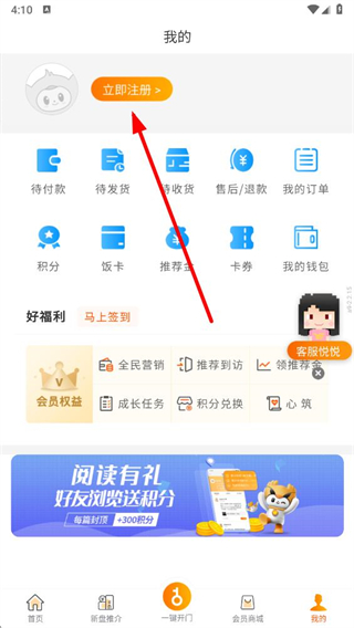 2、在个人页面中,点击立即注册选项,进入登录页面。