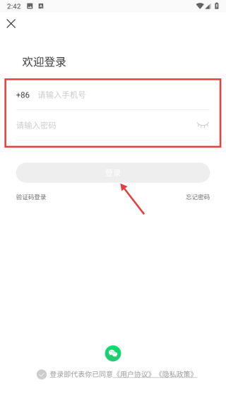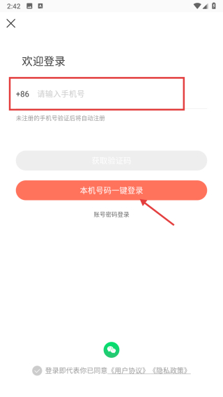 3、在登录页面,可选择本机号码一键登录或账号密码登录方式。若选择账号密码登录,输入手机号码和密码。