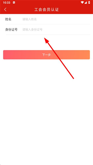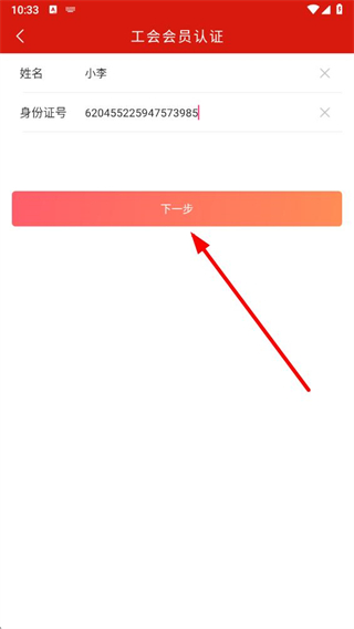 4、输入完成后,点击下一步按钮,按照提示完成后续操作即可完成工会会员认证。