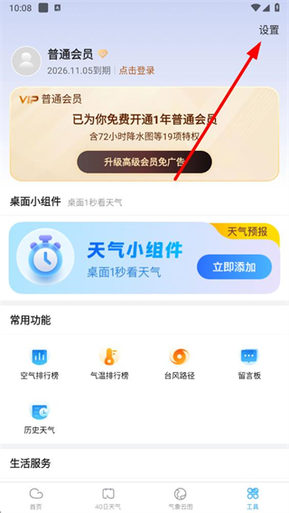 1、打开开心天气APP,点击底部工具进入工具页面。