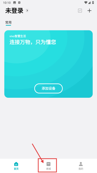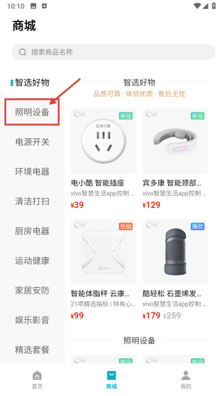 1、打开智能家居类APP首页,点击底部商城选项,进入商城页面。