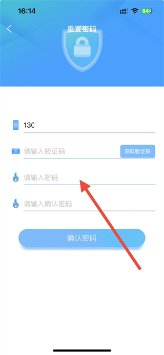 4、在重置密码页面,获取验证码,设置新密码并确认,最后点击确认密码完成操作。