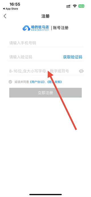 4、在页面输入手机号码、验证码,设置密码并同意相关协议后,点击立即注册即可完成注册。