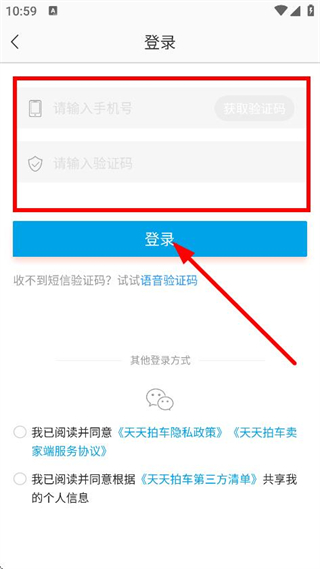 4、输入手机号、验证码,点击登录,完成账号登录操作。