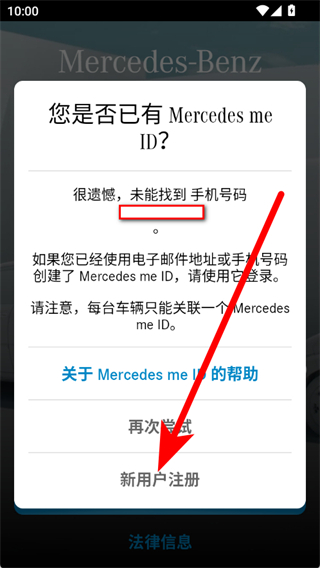 2、进入登录页面后,若没有Mercedes me ID,点击新用户注册。