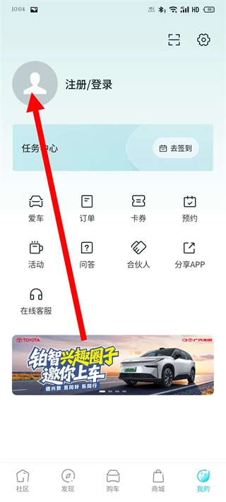 1、打开广汽丰田新能源,点击底部导航栏我的。