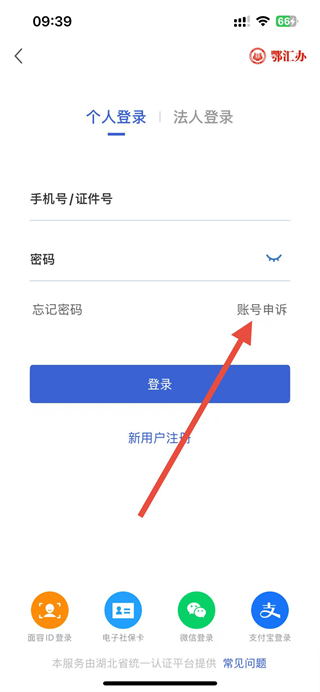 2、在登录界面点击账号申诉选项,进入账号申诉页面。