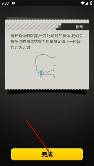 3、尽所能多做俯卧撑,完成后点击完成,获得量身定做的训练计划。