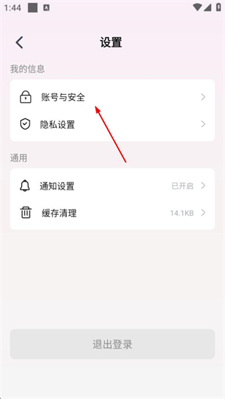 3、在设置页面,点击账号与安全选项,进入账号与安全页面。