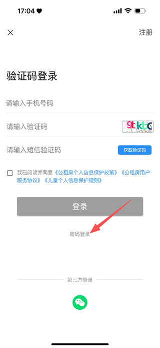 3、在登录页面,点击密码登录,切换到密码登录页面。