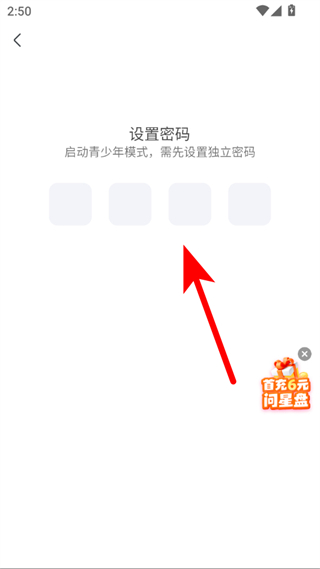 4、在设置密码页面设置独立密码,即可完成知星APP青少年模式的开启。