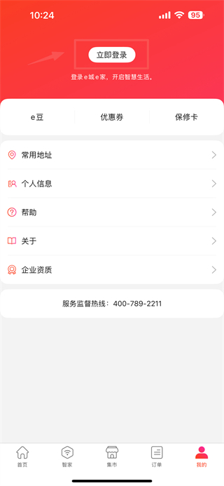 2、在个人中心,点击立即登录按钮,进入登录界面。