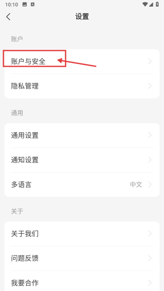 3、在设置界面,点击账户与安全选项,进入账户与安全页面。