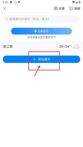 2、在城市管理页面,点击添加城市按钮,进入添加城市界面。