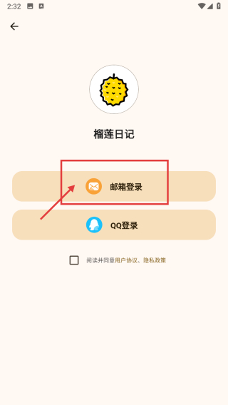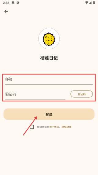 4、在邮箱登录页面,输入邮箱和验证码,勾选协议后点击登录按钮,完成账号登录操作。