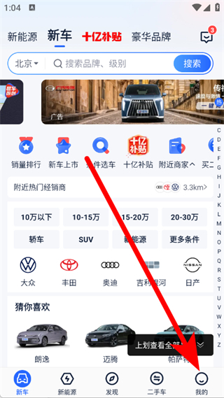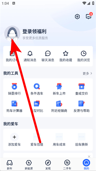 1、打开易车汽车报价,点击底部导航栏我的,进入个人页面。